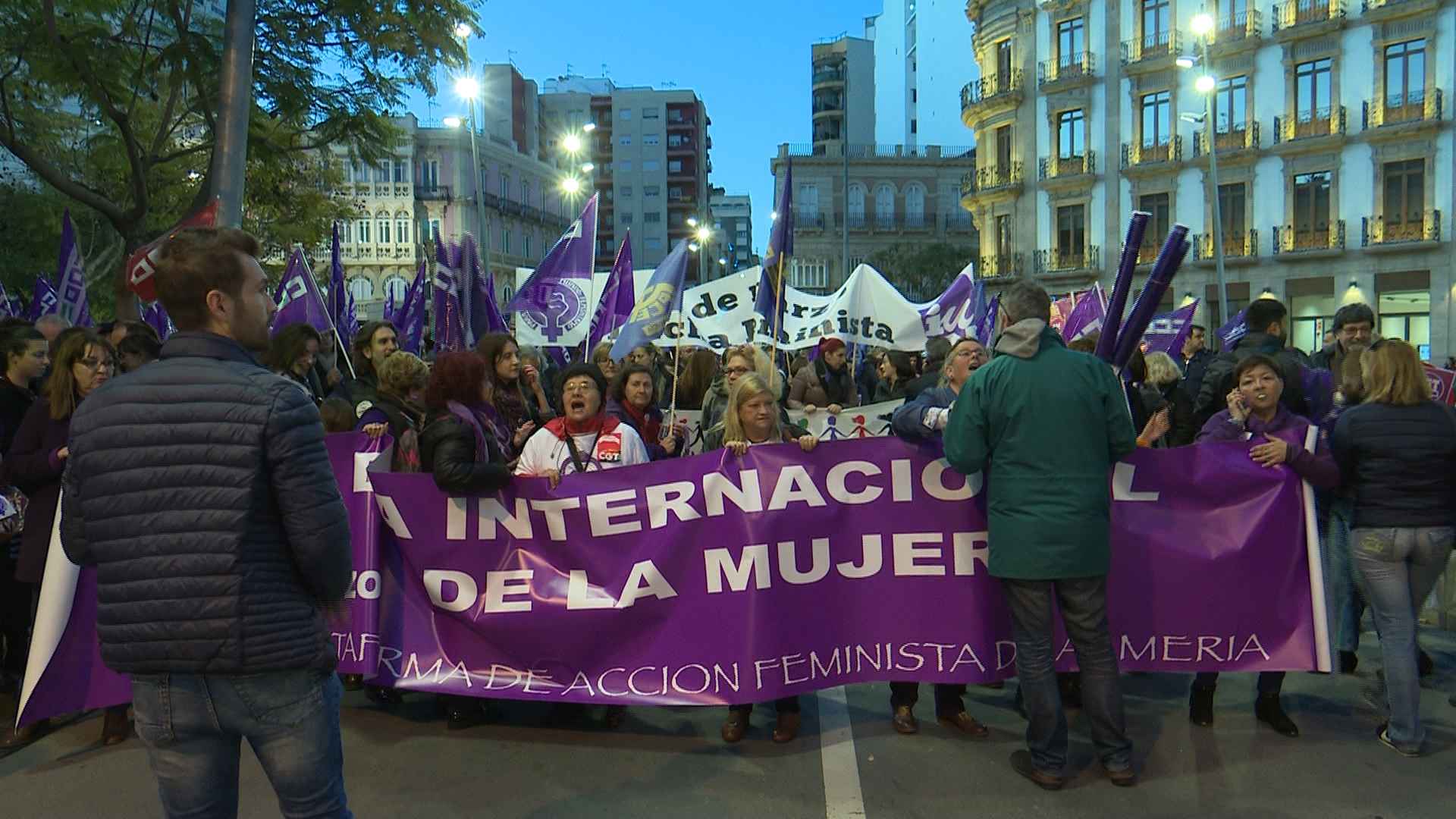 El Paseo de Almería se convertió en una marea morada de manifestantes por el Día de la Mujer. Miles de personas abarrotaron el corazón de la ciudad en una manifestación del 8 de marzo sin precedentes al grito de consignas como ‘El machismo es terrorismo’, ‘Ni sumisas ni pasivas, mujeres combativas’ y ‘Sin feminismo no…