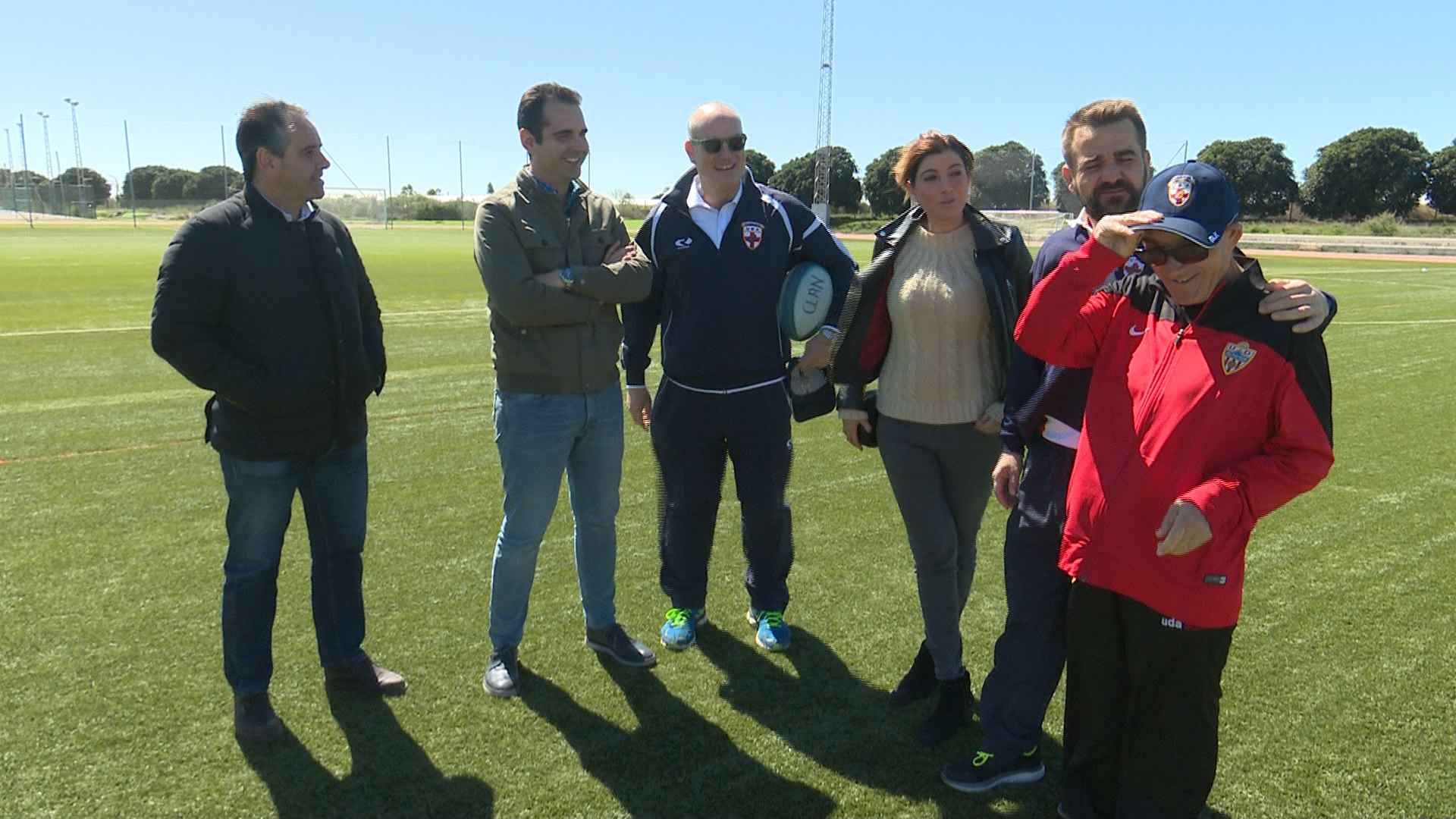 El Alcalde de Almería hizo entrega de una nueva equipación deportiva con el logotipo de Almería 2019 al URA Clan Senior, equipo de rugby inclusivo de la Unión Rugby Almería. Una nueva sección que llevará el logotipo en sus indumentarias por toda España