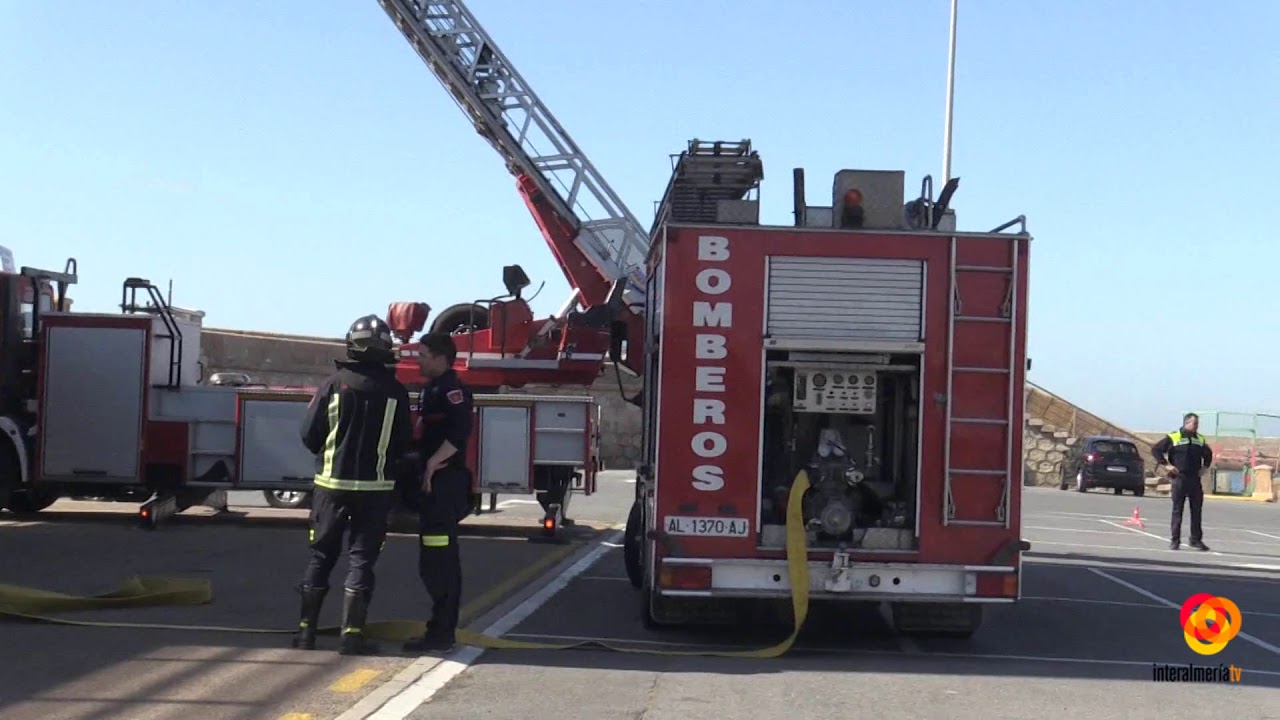 Salvamento Marítimo ha organizado hoy, junto al Parque de Bomberos de Almería, un ejercicio contra incendios y evacuación de heridos. En el dispositivo han participado 8 bomberos y se han utiilizado dos vehículos: una autobomba urbana ligera y una autoescala.
