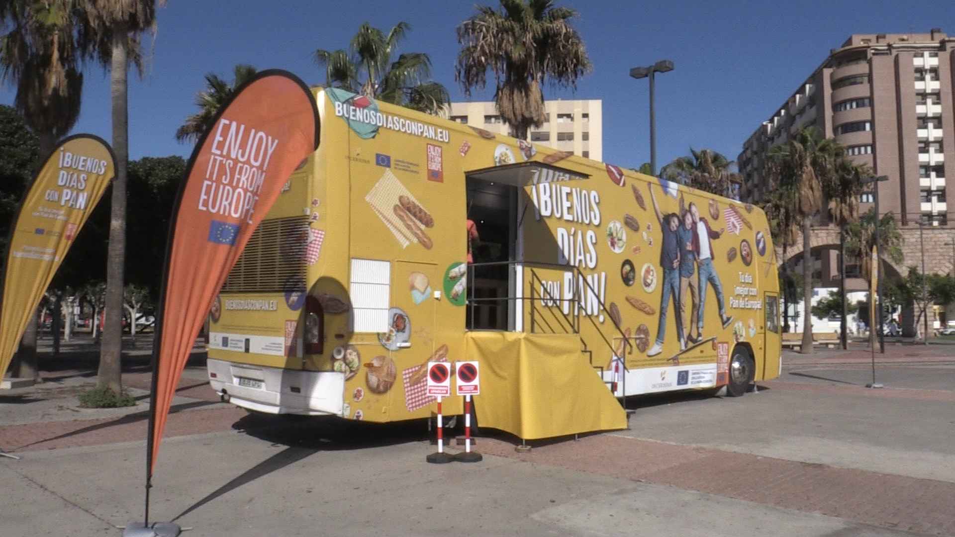 Un autocar instalado en el Parque de las Almadrabillas se han convertido en el centro de la alimentación de la mañana. Y es que a lo largo de la jornada numerosos escolares se han convertido en panaderos por un día.