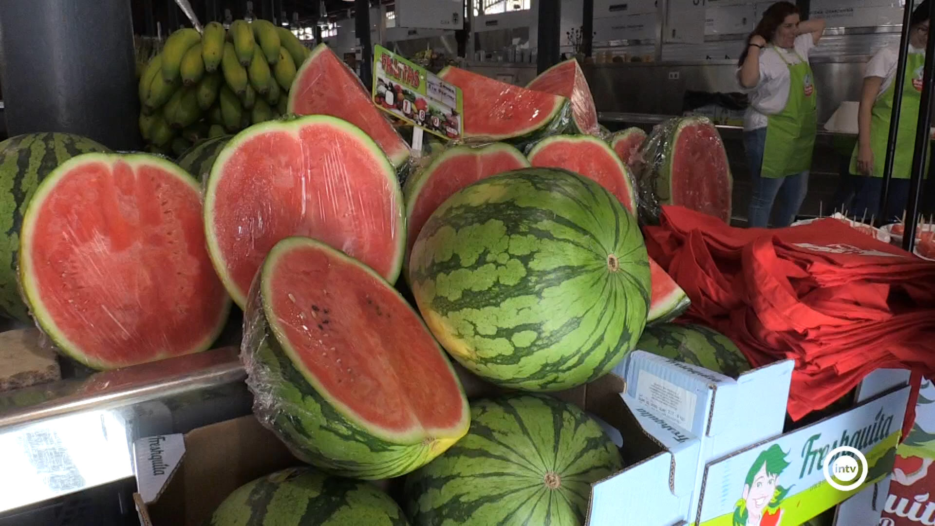 La llegada del buen tiempo es sinónimo también de una explosión de frutas y verduras. Entre ellas, la sandía es la reina del verano y uno de los productos estrella del campo almeriense. Su temporada oficial acaba de arrancar con una campaña de promoción de este producto en el Mercado Central.