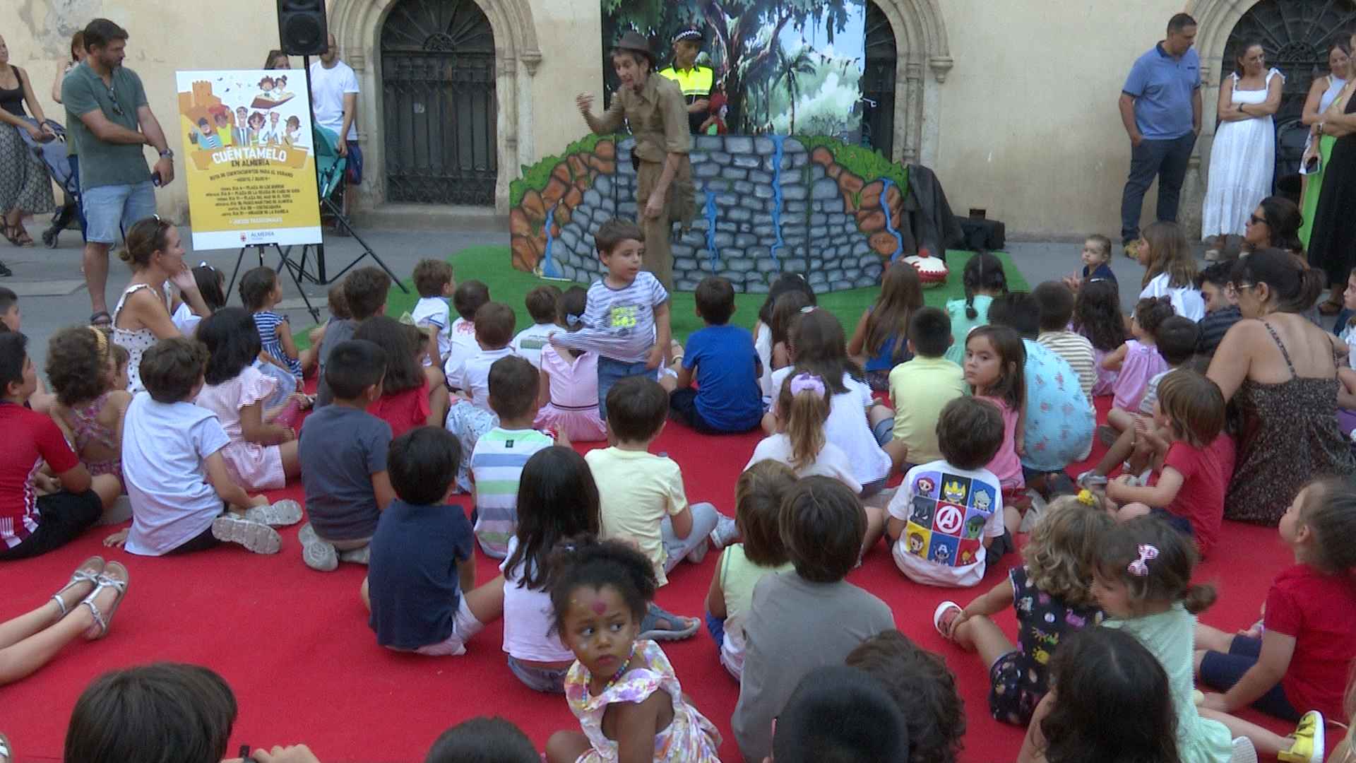 Lleno en la primera parada de la ruta de cuentacuentos Cuéntamelo en Almería. Indalecio Jones y el cine fueron los grandes protagonistas de esta primera cita. Más cuentacuentos el 9 de agosto en Cabo de Gata