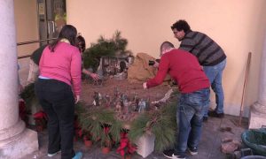 Los miembros de Asalsido ayudan al alcalde de Almería a instalar el Belén