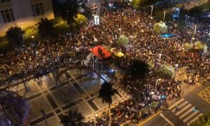 Almería ilumina la Navidad con las brillantes coronas de los Reyes Magos al ritmo de swing. El alcalde, Ramón Fernández-Pacheco, y miles de almerienses comparten el encendido de la Iluminación navideña en el Mirador de la Rambla