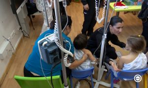 Agentes de la Policía Nacional visitan el área de Oncología de Torrecárdenas